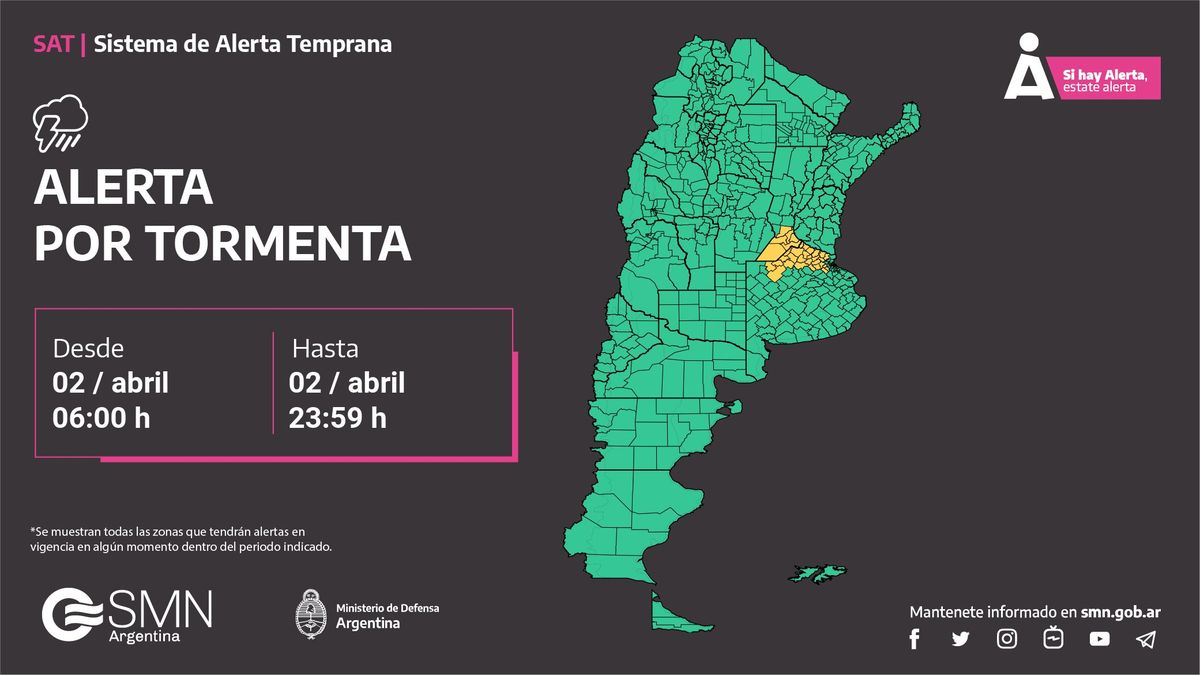 Al menos unas 30 localidades de varias partes del país estarán bajo alerta amarilla durante este domingo por tormentas y lluvias de variada intensidad. El Servicio Meteorológico Nacional (SMN) detalló qué zonas del norte de la provincia de Buenos Aires y el sur de Santa Fe.