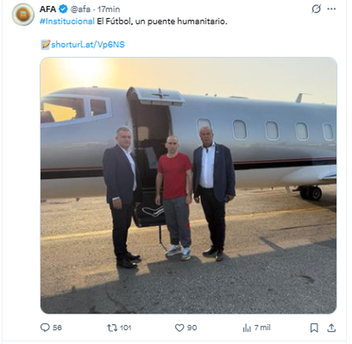 El avión en el que está de vuelta Gallo a la Argentina pertenece a Baires Fly, una empresa asociada al titular de la Asociación del Fútbol Argentino (AFA), Claudio “el Chiqui” Tapia. De hecho, fue el máximo ente del fútbol nacional el que emitió un comunicado oficial al respecto de la liberación del gendarme.