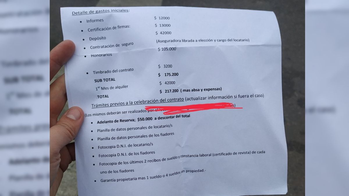A través de su cuenta de Twitter, Victoria Iseas mostró la insólita factura que recibió de una inmobiliaria para ingresar a un departamento. “Tenés que vender un riñón y dejar de comer por al menos seis meses”, ironizó la usuaria @Victoriaiseas