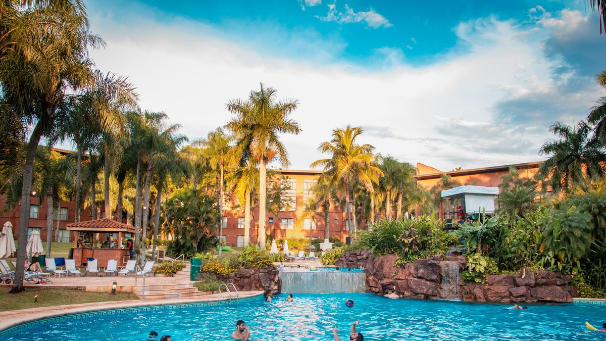 El hotel cuenta con 134 habitaciones rodeadas de jardines tropicales, piscinas exteriores, spa con saunas y terma romana, gimnasio y una oferta gastronómica de alto nivel. Su cercanía al Parque Nacional Iguazú lo convierte en una base estratégica para combinar excursiones con momentos de relax.