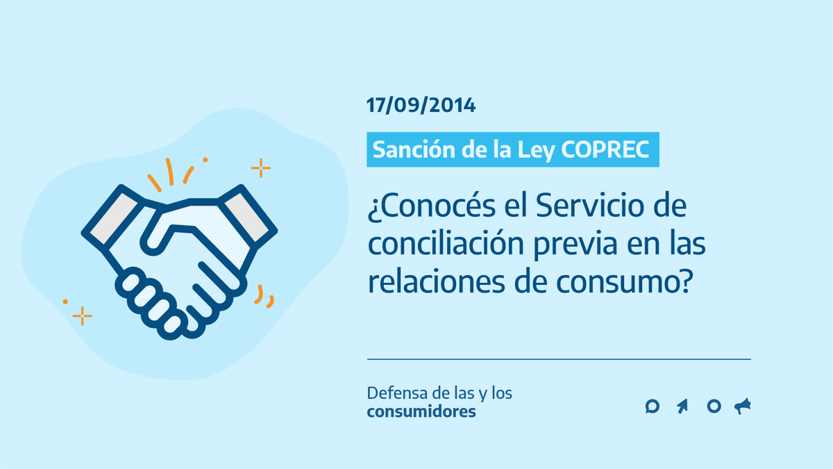 El Servicio de Conciliación Previa en las Relaciones de Consumo (COPREC) tiene como objetivo asegurar "la continuidad del servicio de asesoramiento y patrocinio gratuito a la comunidad, hasta tanto una ley especial disponga la organización, conformación y funcionamiento de tal servicio", según la Ley Nº1218, CABA.