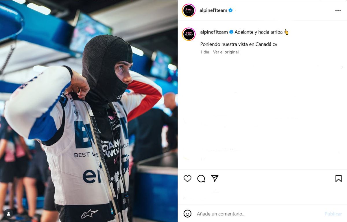 Mientras la Fórmula 1 atraviesa un receso antes de retomar la acción en Canadá, la escudería Alpine decidió aprovechar la pausa para respaldar públicamente a Franco Colapinto. El piloto argentino, que no tuvo el rendimiento esperado en el último fin de semana en Barcelona, recibió un mensaje directo desde el equipo francés: “Hacia adelante y hacia arriba. Poniendo la mirada en Canadá”, escribieron en redes junto a una foto suya en boxes, reflejando concentración y enfoque.