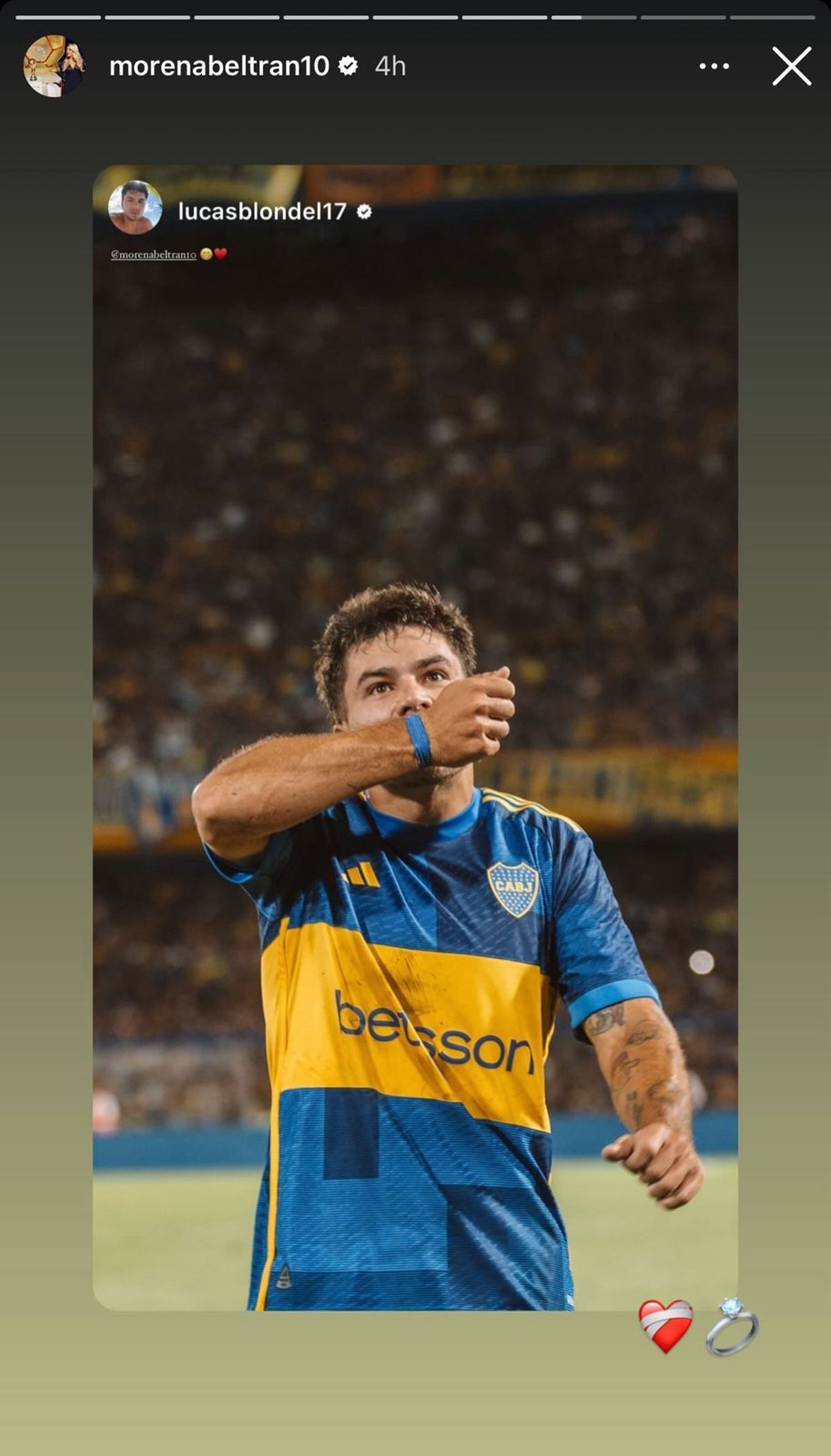 Este domingo, Boca venció a Racing por 4-2 en La Bombonera y los fanáticos del Xeneize celebraron con mucho entusiasmo. Esta victoria contó con un golazo de Lucas Blondel, que anotó el primer tanto del conjunto azul y oro desde afuera del área. Una de las reacciones más sorprendentes fue la de su novia, la periodista Morena Beltrán, que no dudó en manifestarse a través de las redes sociales.