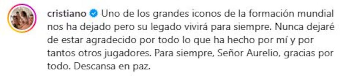 El fútbol portugués despidió este martes a una de sus figuras más influyentes fuera de los flashes. Aurélio da Silva Pereira, formador de talentos y descubridor de estrellas como Cristiano Ronaldo, Luís Figo y Paulo Futre, murió a los 77 años. La noticia generó conmoción y uno de los primeros en pronunciarse fue CR7, quien lo homenajeó con un emotivo mensaje en sus redes sociales.