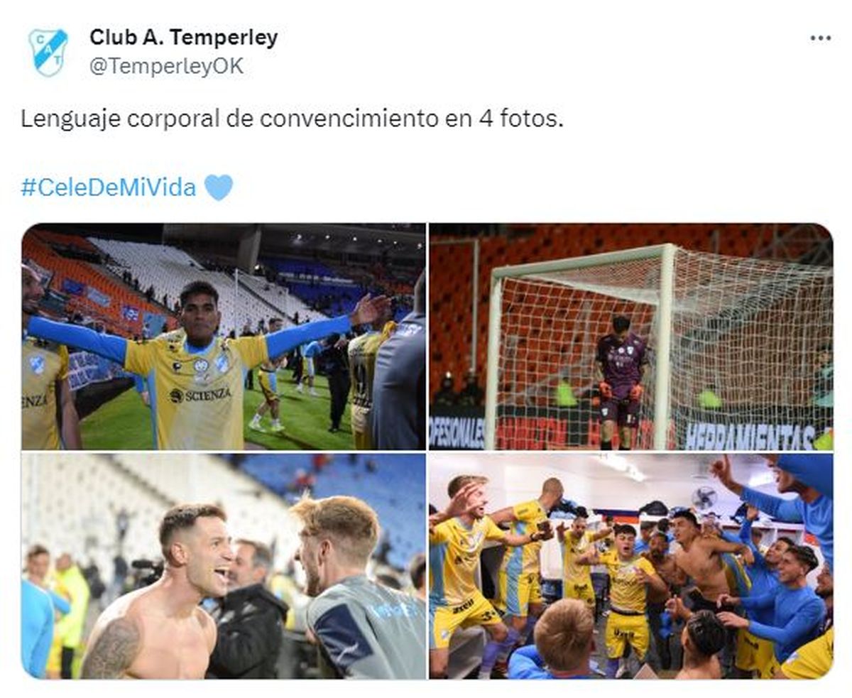 La euforia de Temperley por haber eliminado a River de la Copa Argentina aumenta a medida que van pasando las horas. Cuando Francisco Rago atajó el penal decisivo de David Martínez, el pueblo celeste desató una verdadera fiesta en el estadio Malvinas Argentinas y en las redes sociales, donde abundaron las burlas dirigidas a Martín Demichelis.