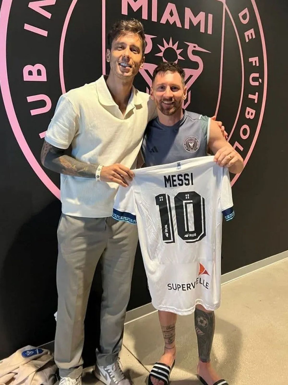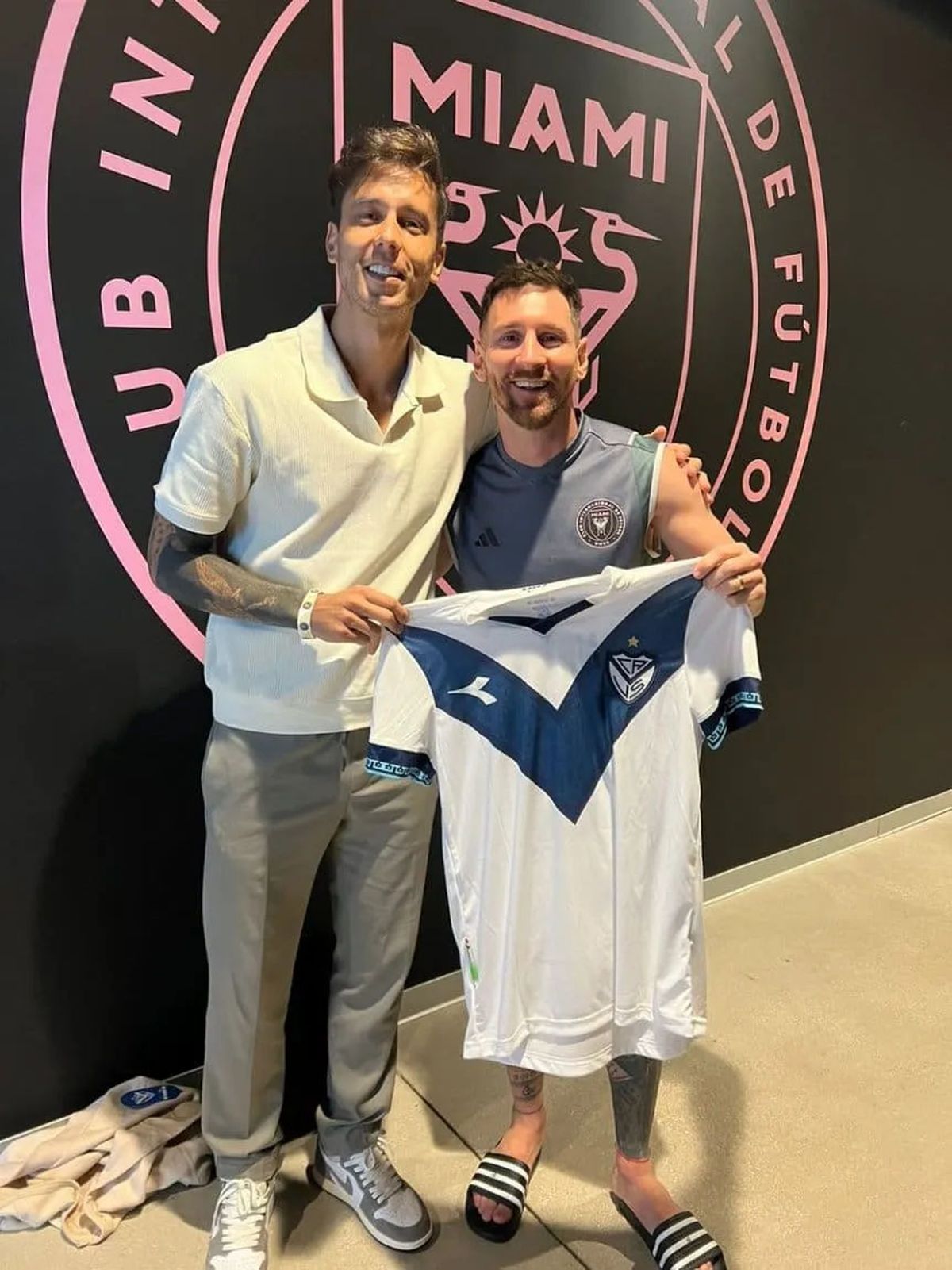 Después de haber jugado un amistoso contra Newell's en el Chase Stadium (ex DRV PNK Stradium) y posado con la camiseta rojinegra, Lionel Messi sorprendió al mundo del fútbol argentino al ser fotografiado con la indumentaria de otro club de Primera División.