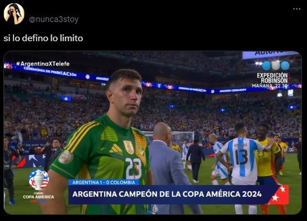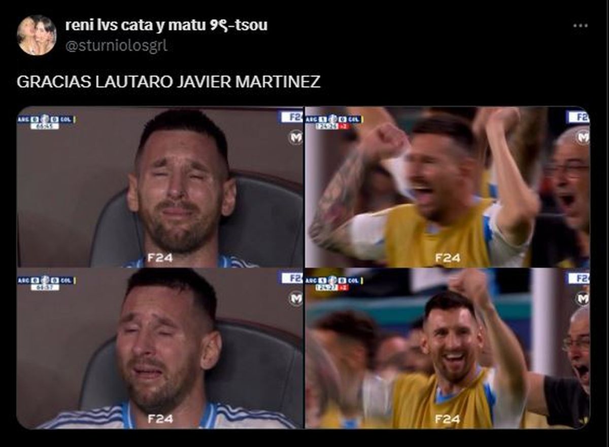 En un partido para el infarto, la Selección Argentina venció 1-0 a Colombia y se consagró campeón de la Copa América 2024 con un gol agónico de Lautaro Martínez, logrando el bicampeonato. Como suele ocurrir en estos casos, las redes sociales jugaron su propio partido. Mirá los mejores memes y reacciones.