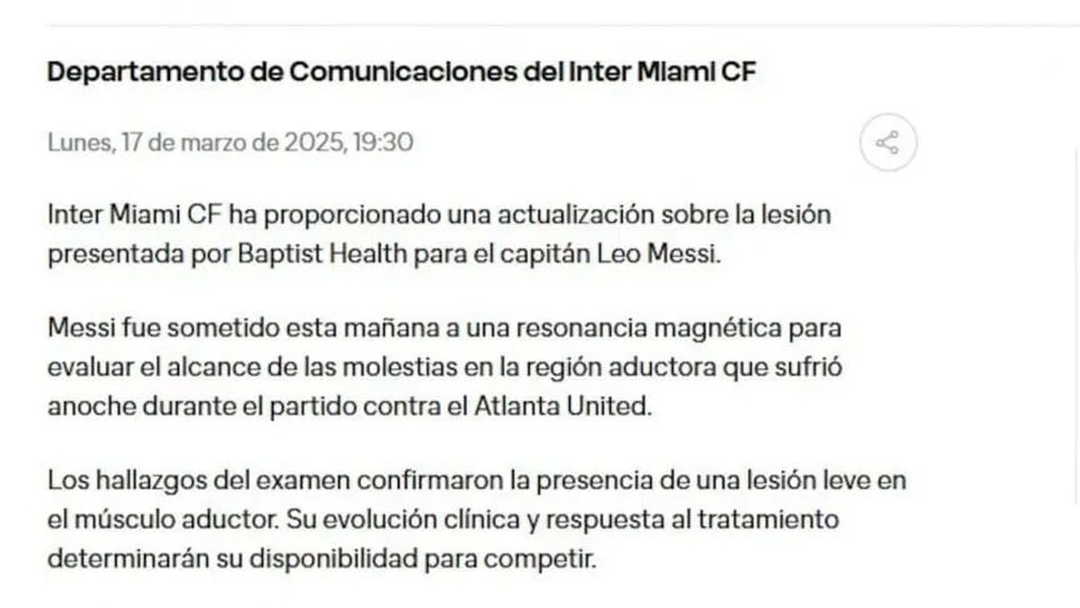 Lionel Messi no podrá estar con la Selección Argentina en los clásicos ante Uruguay y Brasil por las Eliminatorias Sudamericanas. El capitán albiceleste sufrió una lesión en el aductor izquierdo durante el encuentro entre Inter Miami y Atlanta United por la MLS, lo que llevó a Lionel Scaloni a desafectarlo de la convocatoria.