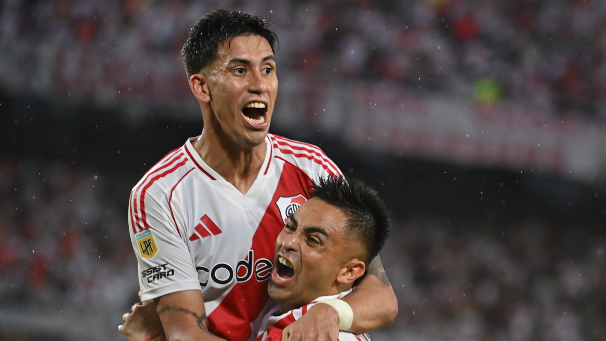 Pero para los 23 minutos del complemento, River se puso en ventaja después de un centro magistral de Franco Mastantuono que cayó dentro del área chica y directo a la cabeza de Meza para que el ex Independiente convirtiera en el primer palo el 1 a 0 del conjunto local ante un complicado rival.