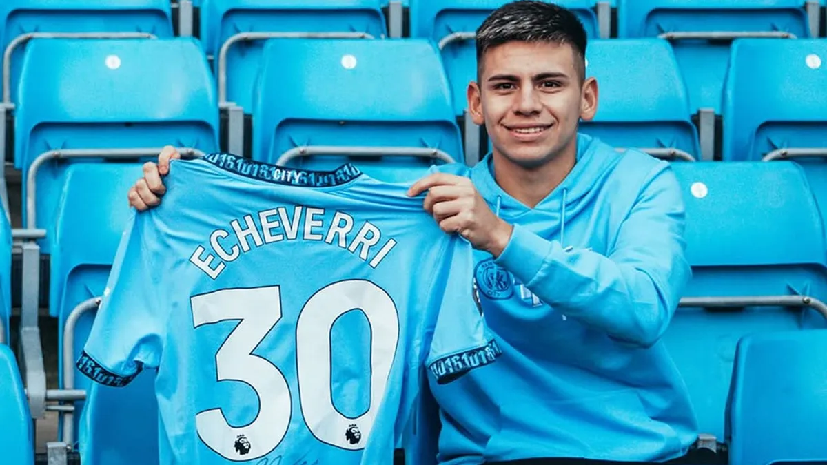 Claudio Echeverri llegó a Manchester City en febrero luego de su destacado rendimiento en el Sudamericano Sub-20 y su traspaso desde River por 25 millones de euros. Desde entonces, entrena con el primer equipo bajo las órdenes de Pep Guardiola, pero todavía no sumó minutos ni fue convocado a un partido oficial.