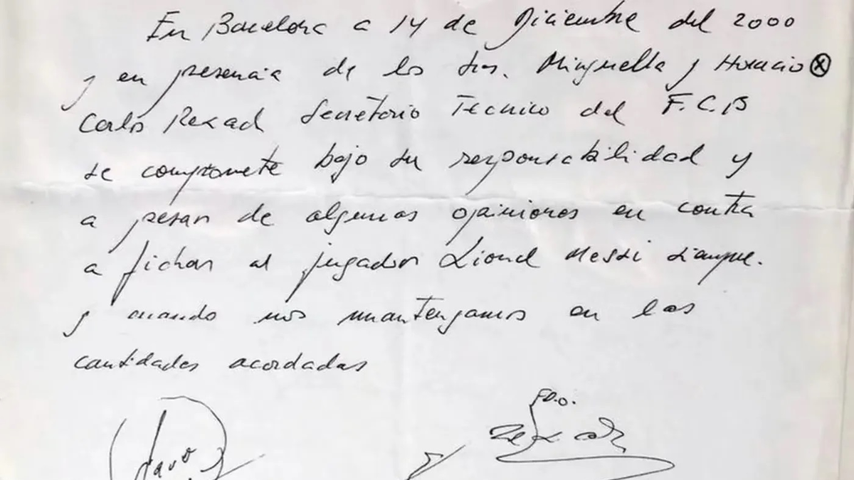 La servilleta que marcó el inicio de la carrera de Lionel Messi a la edad de 13 años con el Barcelona será subastada. Este documento, que sirvió como acuerdo y fue firmado por el intermediario Horacio Gaggioli, Carles Rexach (secretario técnico del club en ese momento) y Josep Maria Minguella, será rematado por Bonhams, la reconocida compañía británica especializada en subastas. El precio de salida se estima alrededor de los 350 mil euros, y la subasta se llevará a cabo entre el 18 y el 27 de marzo.
