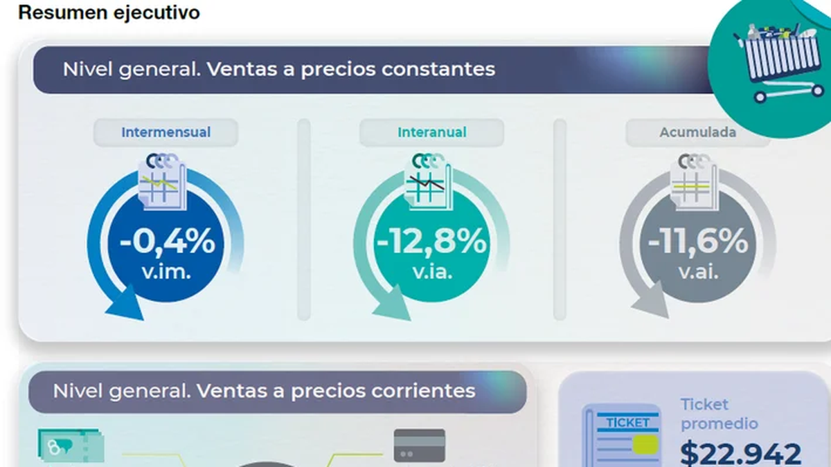 Las ventas en supermercados y autoservicios continúan en caída, afectadas por la merma en el poder adquisitivo de los consumidores. Según los datos oficiales, en septiembre, el Índice de Ventas Totales a precios constantes registró una baja interanual del 12,8% en supermercados, mientras que en autoservicios la caída fue aún más pronunciada, alcanzando el 21,7% respecto al mismo mes de 2023.