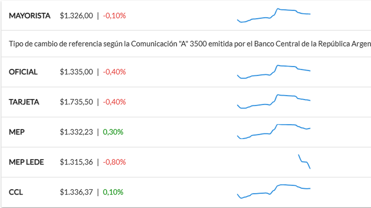 El dólar oficial anotó su mayor baja semanal en tres meses, impulsado por la suba de tasas y una mayor liquidación del agro. Este viernes cedió 50 centavos y cerró en $1.326 en el segmento mayorista, con una acumulación en seis ruedas de un retroceso de $48. En la semana, la caída fue de $38 (2,8%). En el promedio de los bancos del BCRA, el minorista terminó en $1.337,04 y en el Banco Nación en $1.335.
