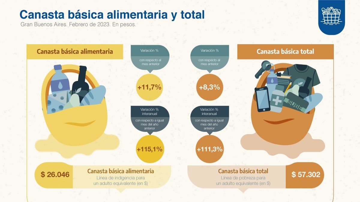 El monto que un adulto promedio necesitó en febrero para no ser pobre se ubicó en $57.301,90, mientras que requirió al menos $26.046,32 para no ser indigente.