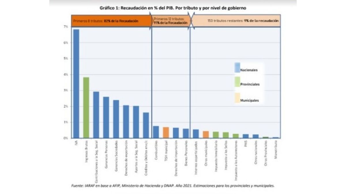 "En contraposición, otros 153 tributos diferentes recaudan el 9% restante a nivel consolidado", indicó el informe de Iaraf.