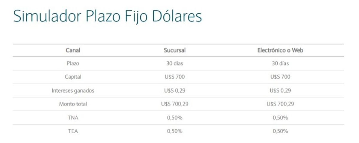 Si bien no es una de las opciones más elegidas por su bajo rendimiento, existe la posibilidad de que los ahorristas decidan invertir su dinero en un plazo fijo en dólares, una herramienta segura, aunque con rendimientos muy por debajo de lo que uno esperaría.