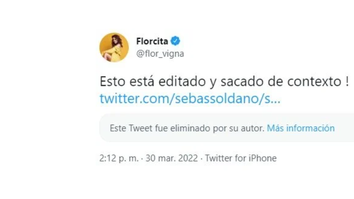 Después de ver el revuelo que generaron sus dichos sobre su ex, Flor Vigna publicó un mensaje contundente en su cuenta de Twitter.