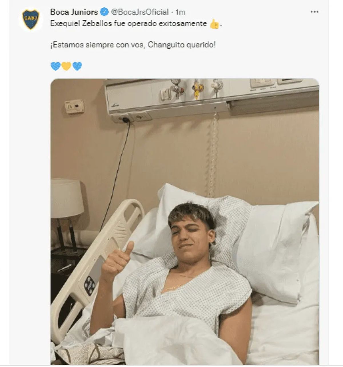 En el duelo de Boca ante Agropecuario por el duelo correspondiente a los octavos de final de la Copa Argentina, Exequiel Zeballos recibió una fuerte patada y "sufrió una lesión de la sindesmosis tibioperonea distal con lesión del ligamento deltoideo y avulsión del maléolo posterior del tobillo derecho", según informaron desde el club de La Ribera. Esta tarde, el futbolista fue operado con éxito.