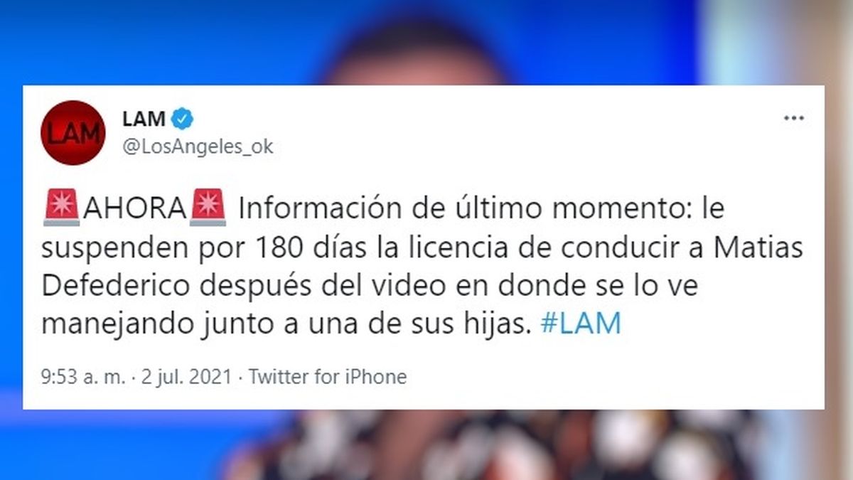 A casi 3 meses del polémico video de Matías Deferico en el que una de sus hijas va cantando arriba del auto sin cinturón, en la parte delantera, la justicia tomó cartas en el asunto y lo sancionó. Así lo informaron esta mañana en Los Ángeles de la, el programa que conduce Ángel de Brito y cuenta con la ex del futbolista y madre de sus 3 hijas, Cinthia Fernández, como panelista.