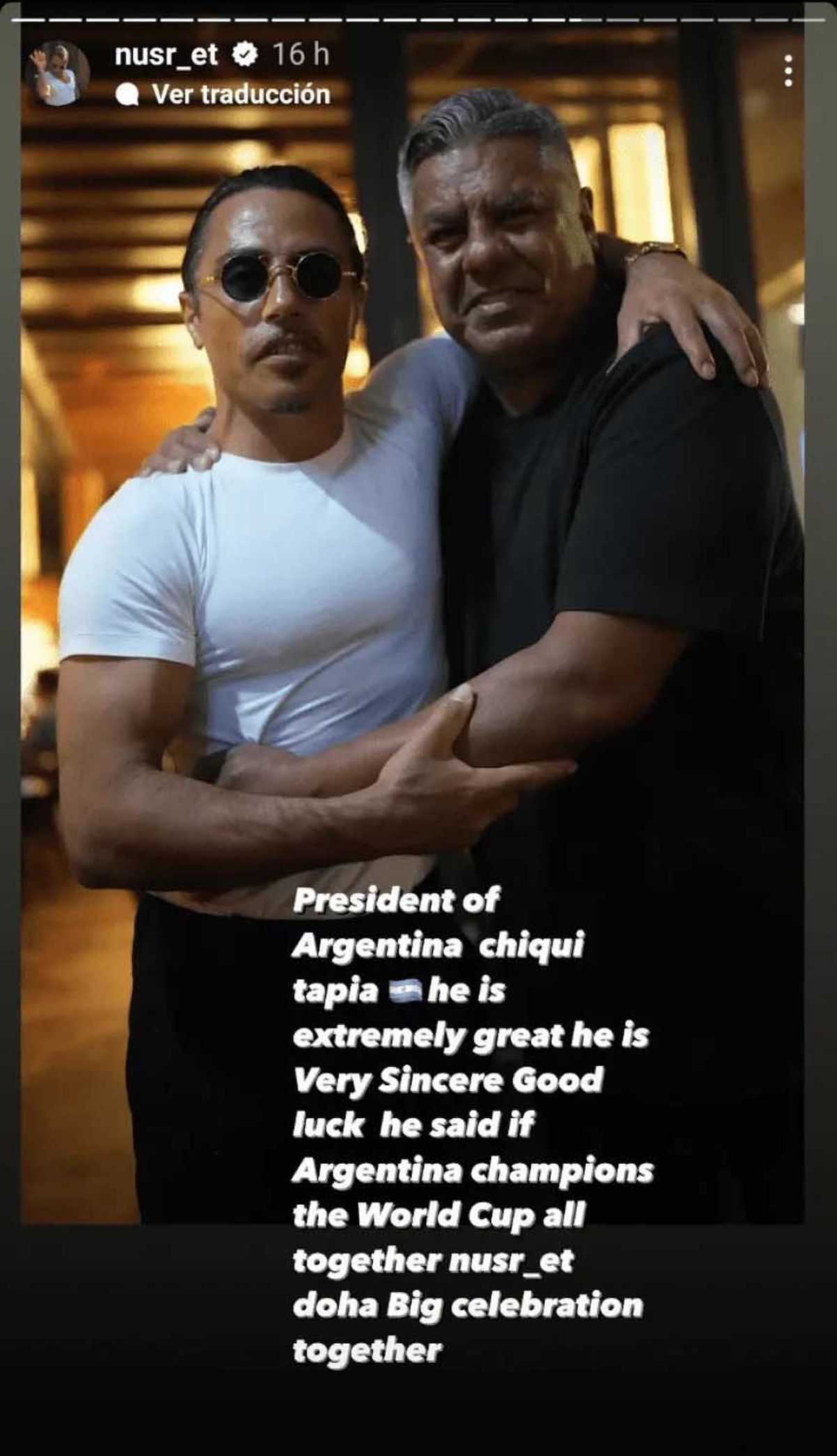 Más de un famoso argentino se dio el lujo de comer en el restaurant de Nusret Gökçe, conocido popularmente como Salt Bae, y sacarse una foto con él. Entre ellos, se destacaron Lionel Messi, Sergio Agüero y hasta Diego Armando Maradona. Ahora le tocó el turno a Claudio Chiqui Tapia, presidente de la AFA, quien no solo disfrutó de la comida y su famoso “ritual de la sal”, sino que, además, le hizo una promesa si la Selección Argentina se consagra campeón del Mundial Qatar 2022.