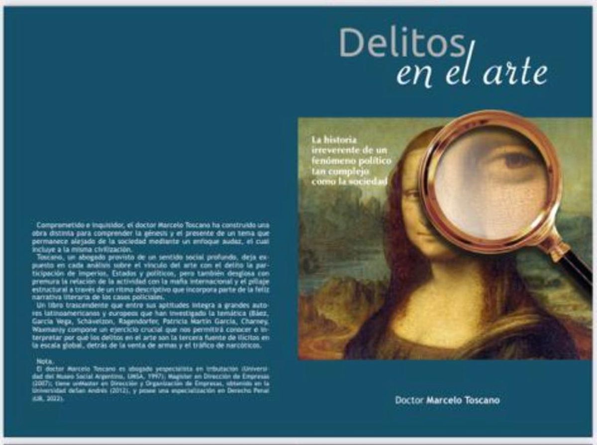 "No hay mucho que se haya escrito sobre el tema. Es un tranajo muy serie junto a un excelente equipo de abogados. Yo hice una tésis sobre esto para lograr el Master en Derecho Penal. Es un tema muy apasionante, se van a encontrar con un estudio minucioso de los grandes casos históricos, como por ejemplo el robo a la biblioteca en 1980, está muy bien tratado. Les va a interesar porque está tratado desde el punto devista también artístico y no solamente por el lado jurídico", destacó Toscano.