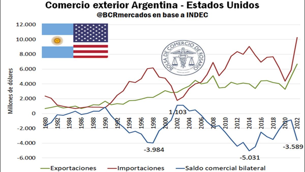Otro elemento negativo es que la balanza comercial con los Estados Unidos es claramente deficitaria desde hace años. La Argentina tiene históricamente un déficit comercial con EE.UU. en el rubro de acero, hierro y sus manufacturas.