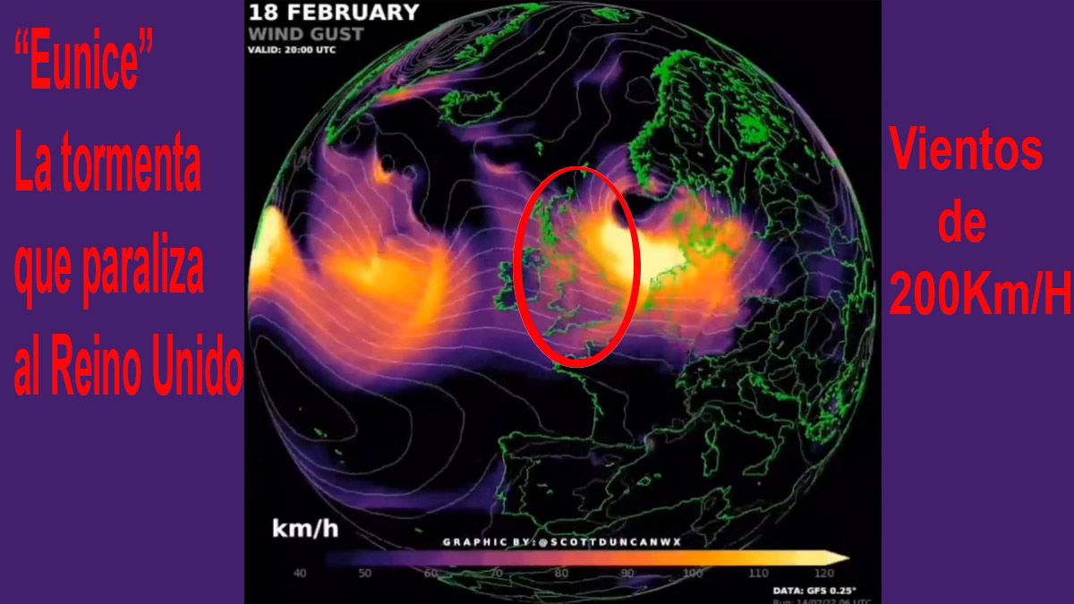 El pico del paso de la tormenta "Eunice" es para la tarde de Gran Bretaña.