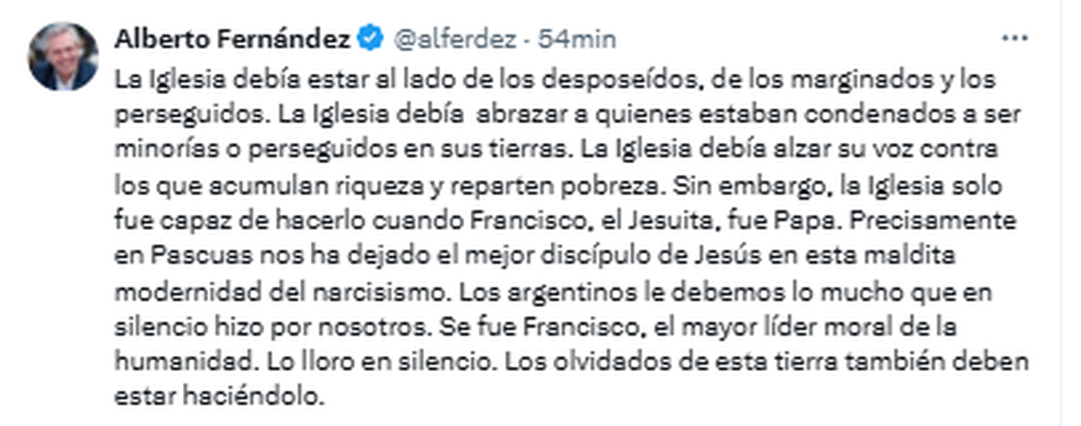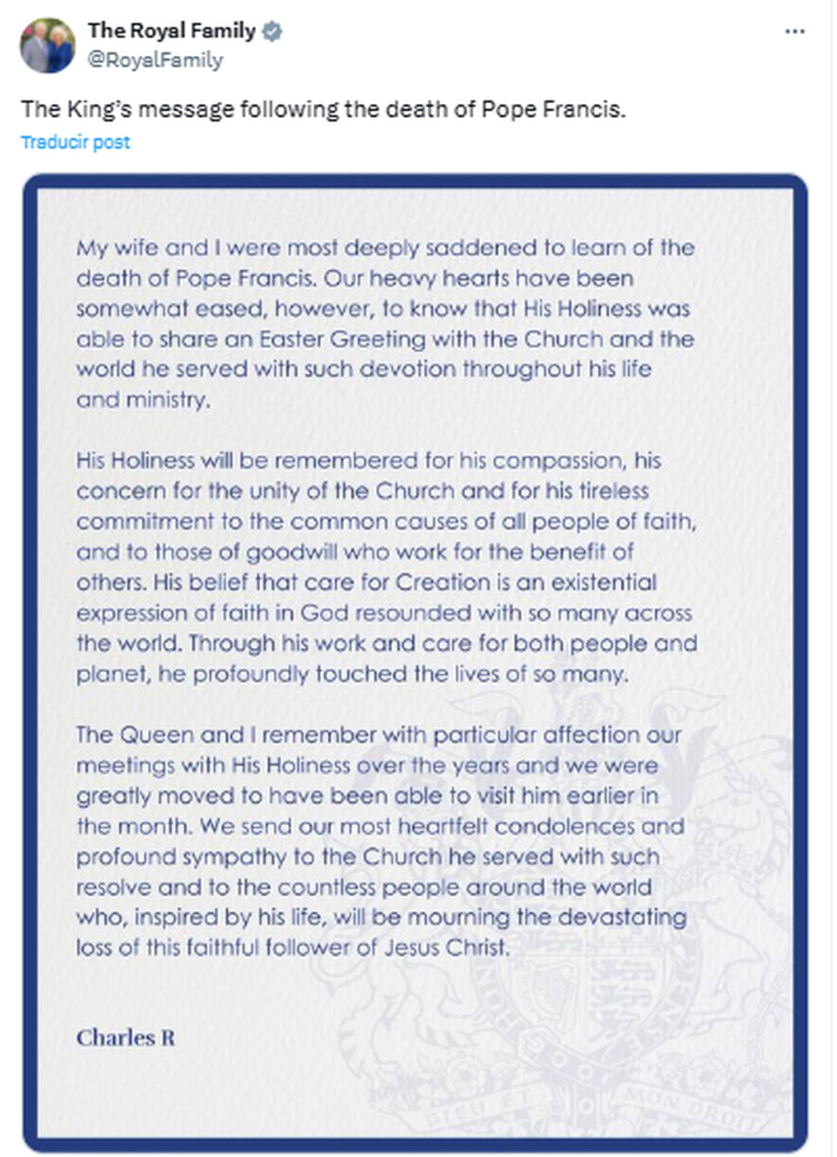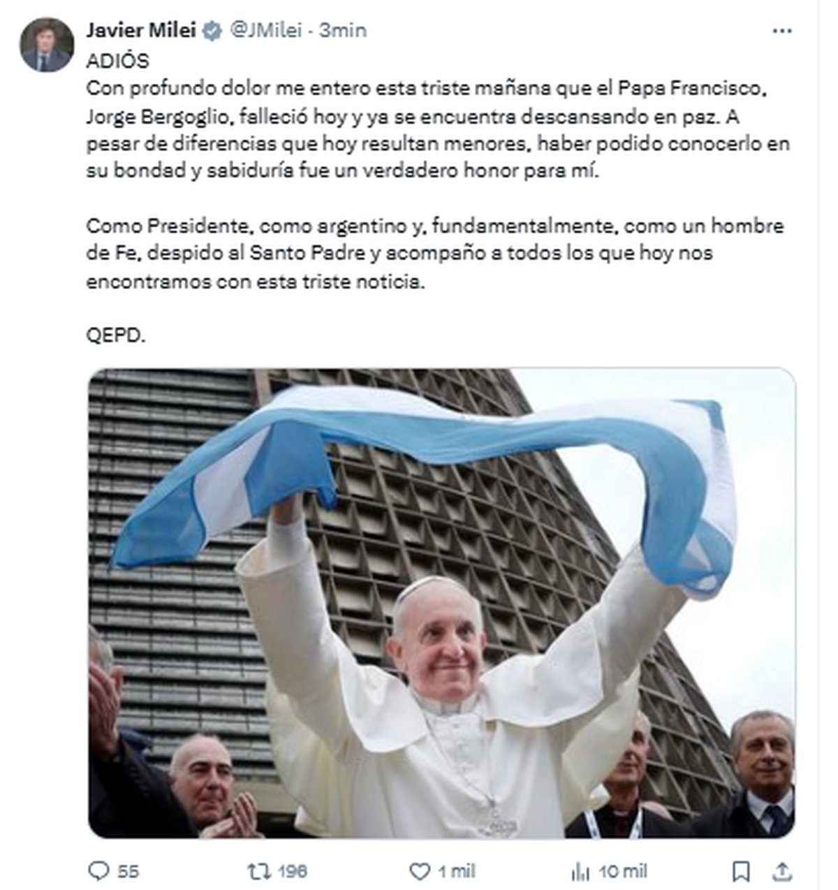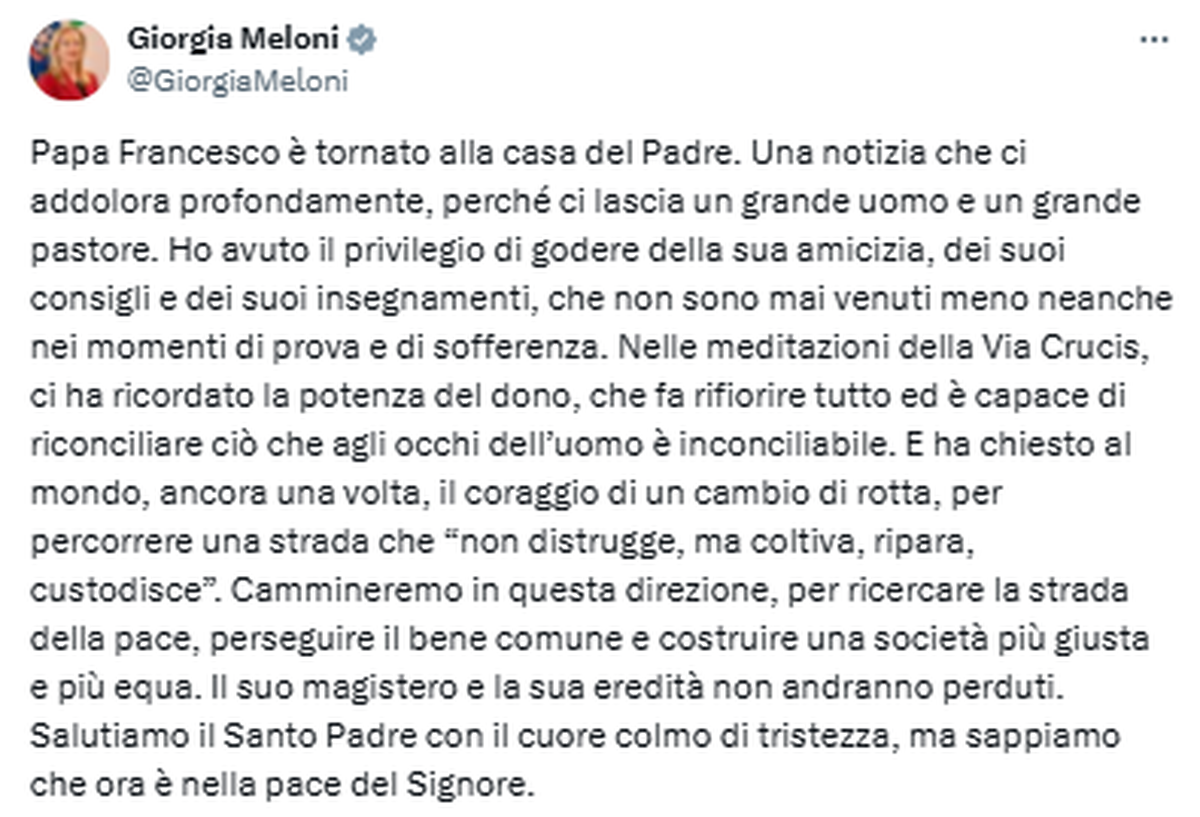 Embora o dia de hoje seja de muita tristeza, vamos nos lembrar para sempre da alegria do Papa Francisco. Do sorriso que iluminava a tudo e a todos. Francisco foi o Papa da esperança. Em sua despedida renovou a crença nos seres humanos, e previu um futuro melhor para a humanidade.… pic.twitter.com/NOS3xb5foQ