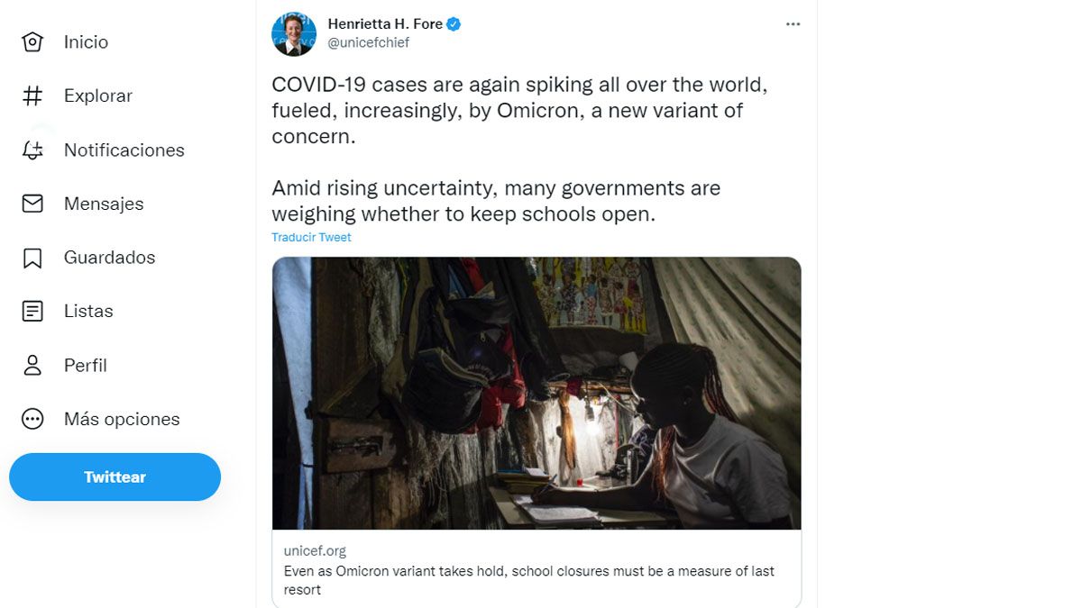 "Los casos de COVID-19 están aumentando nuevamente en todo el mundo, impulsados, cada vez más por Ómicron, una nueva variante preocupante. En medio de la creciente incertidumbre, muchos gobiernos están sopesando la posibilidad de mantener abiertas las escuelas".