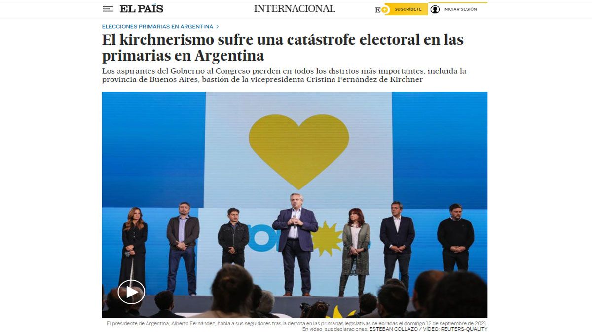 También recoge la frase que la mayoría de la prensa internacional tomó del discurso de aceptación de la derrota por parte de Alberto Fernández: “Algo no hemos hecho bien para que la gente no nos acompañe y todos los que estamos aquí escuchamos el veredicto".