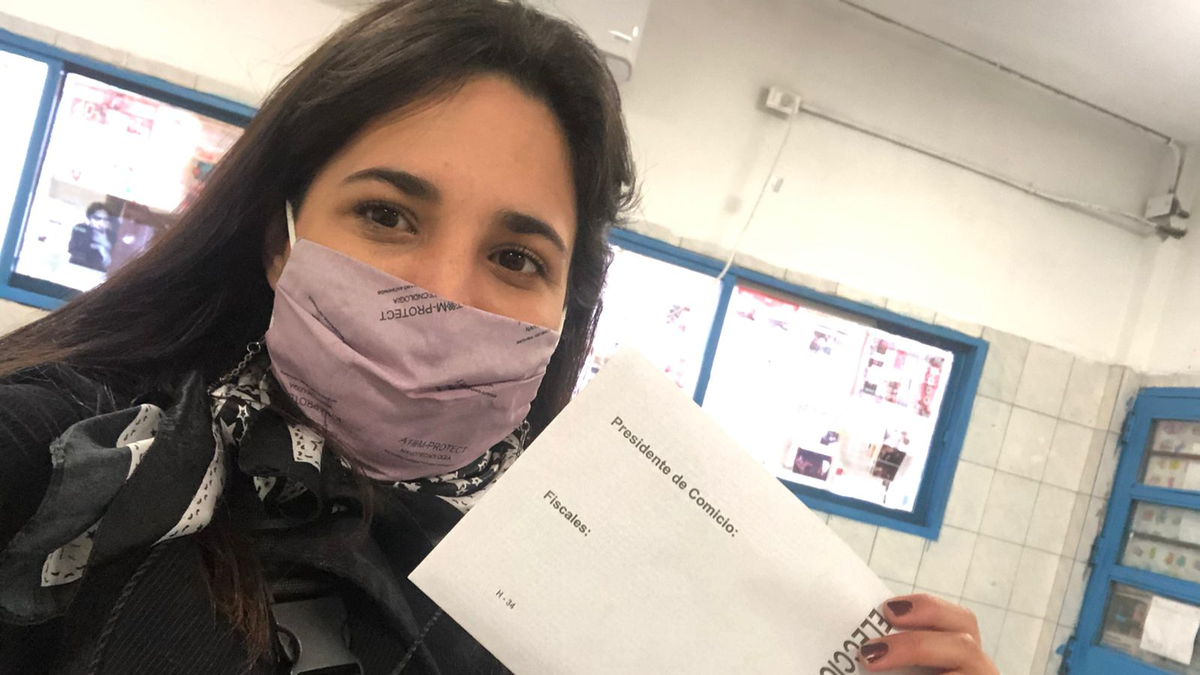 Cuando salí del cuarto oscuro, puse el sobre en la urna, me puse alcohol en gel en las manos y la presidenta de mesa me dijo que agarré el documento y el comprobante de voto que ella había dejado en una esquina.