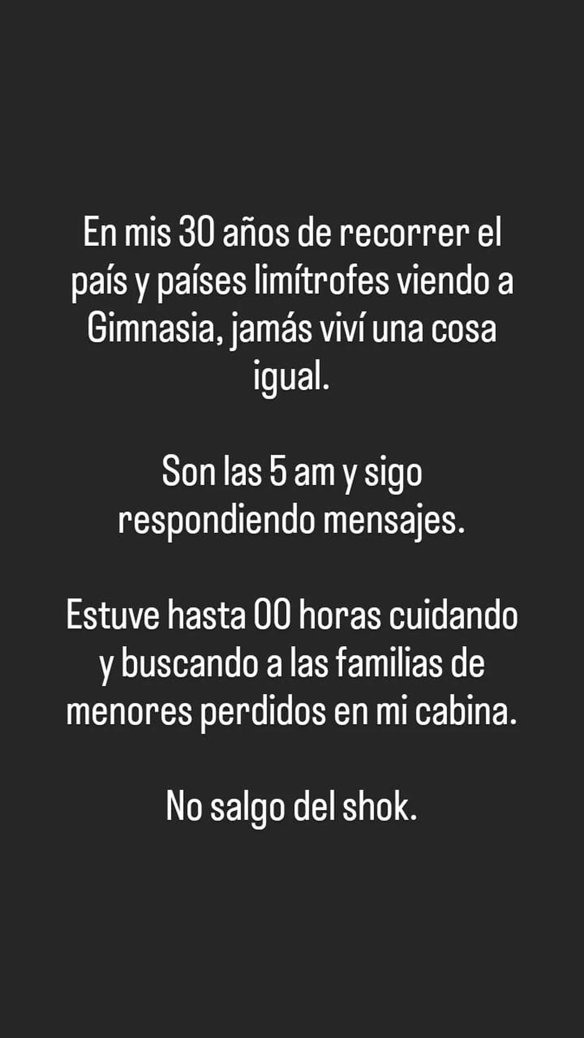 En medio de los gravísimos incidentes ocurridos anoche en el estadio de Gimnasia, que dejó como saldo la muerte de un hincha y varios heridos, sobresalió el gesto solidario de Ivana Rodríguez, responsable de la voz del estadio Juan Carmelo Zerillo. Desde su lugar, y ayudada por los altoparlantes, la mujer cumplió un rol fundamental para que distintos chicos que se perdieron se reencontraran con sus familiares. Y tras la trágica noche, contó que estuvo hasta la medianoche “cuidando y buscando a las familias de menores perdidos”.