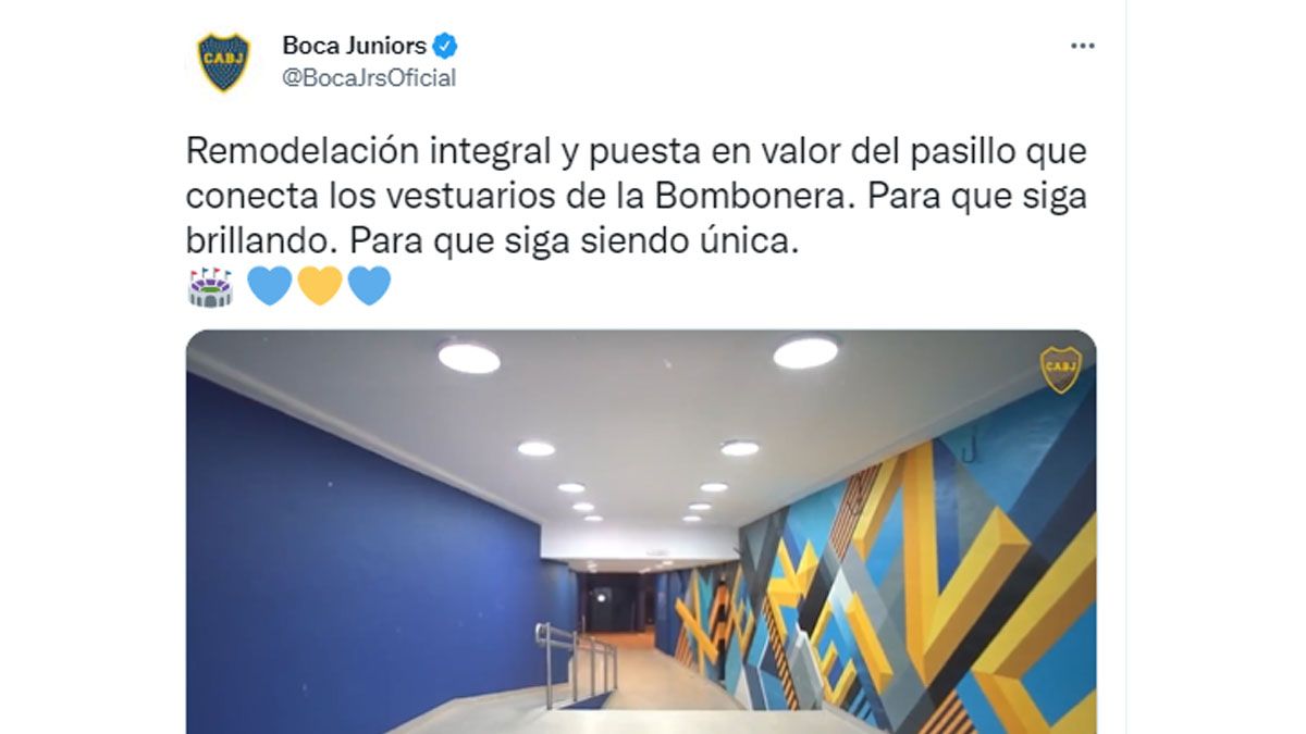Esta noche, Boca recibirá a Corinthians en La Bombonera en el duelo correspondiente a la 5° fecha de la Fase de Grupos de la Copa Libertadores. En la previa del encuentro, Boca inaugurará una importante renovación que se realizó en los pasillos de La Bombonera.