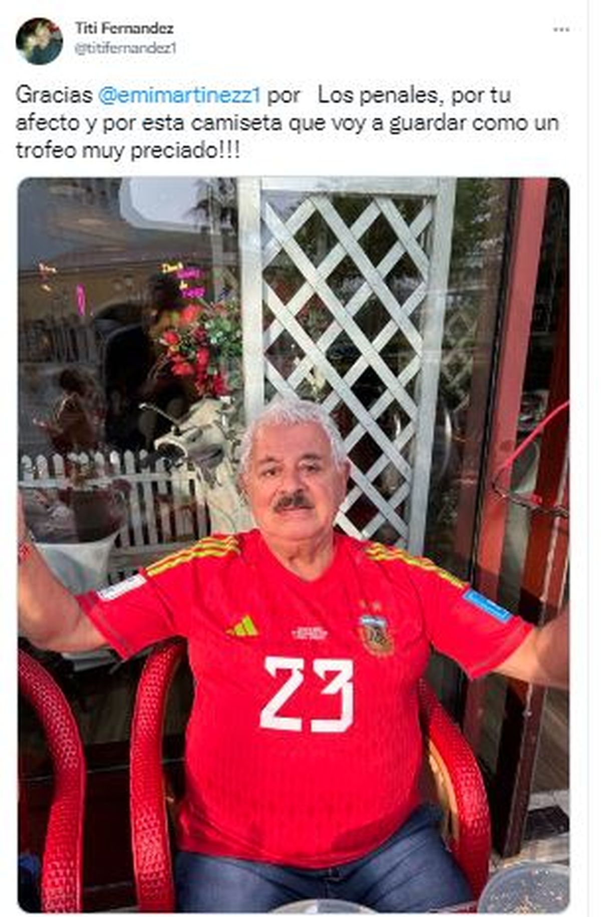La Selección Argentina venció por penales a Países Bajos y, tras la victoria que le dio a la Scaloneta el pase a la semifinal del Mundial Qatar 2022, Emiliano Dibu Martínez decidió regalarle la camiseta que usó durante dicho partido a un famoso periodista deportivo: Tití Fernández.