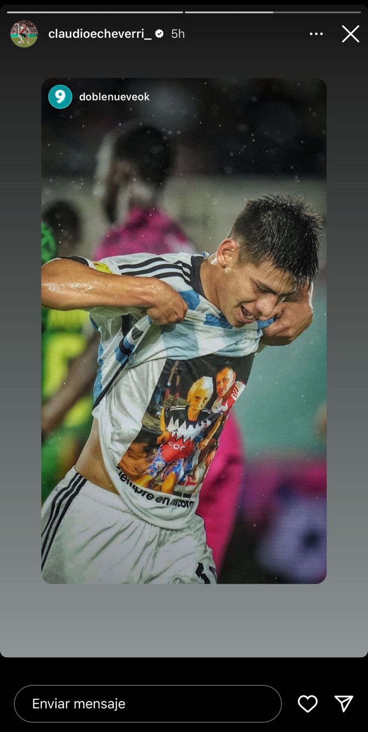 La Selección Argentina Sub 17 sufrió una derrota por 3-0 frente a Malí en el partido correspondiente al tercer y cuarto puesto del Mundial de la categoría. En este encuentro, Claudio Echeverri no comenzó como titular debido a que no se encontraba en buenas condiciones emocionales tras el fallecimiento de su abuela, Dolores. Sin embargo, ingresó en la segunda mitad y se llegó a ver un emotivo homenaje que tenía preparado para ella.