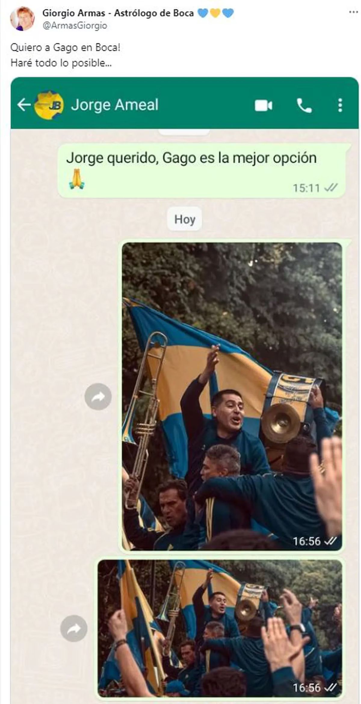 Giorgio Armas, el astrólogo de Boca, difundió, a través de sus redes sociales, un pedido que le hizo al actual presidente de Boca, Jorge Amor Ameal, mientras se espera por la resolución de la fecha de las elecciones que fueron suspendidas. En ese contexto, todo parece indicar que la actual gestión tomará decisiones relacionadas con el ámbito futbolístico, como, por ejemplo, la elección del próximo entrenador del conjunto azul y oro.