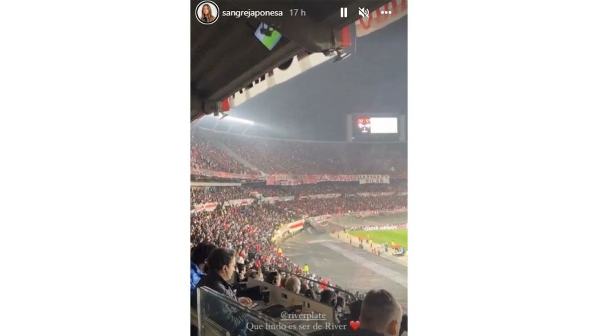 River quedó eliminado en octavos de final de la Copa Libertadores ante Vélez en el Monumental. Dado que el Millonario había caído1 a 0 ante el Fortín de visitante, necesitaba ganar de local para poder pasar de ronda. Por ese motivo, los hinchas fueron a la cancha para alentar a su equipo, que iba en busca de la heróica. Entre los fanáticos, se destacó María Eugenia "China" Suárez.