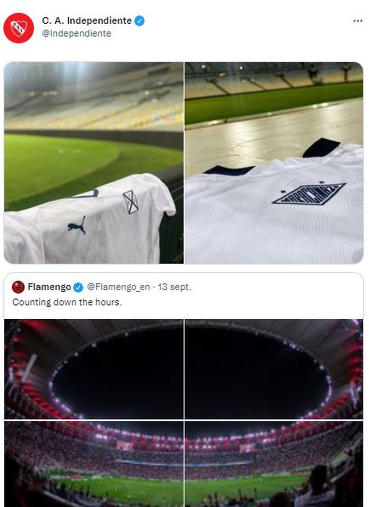 Este viernes, Independiente presentó, de manera oficial, su nueva camiseta alternativa que tiene un diseño inspirado en dos hazañas históricas para el club, como lo fueron las conquistas ante Flamengo de la Sudamericana 2017 y de la Supercopa de 1995. Por ese motivo, el escudo de la casaca lleva la inscripción de "Maracanazo" y, desde la cuenta de Twitter del club, aprovecharon para chicanear al conjunto brasileño.