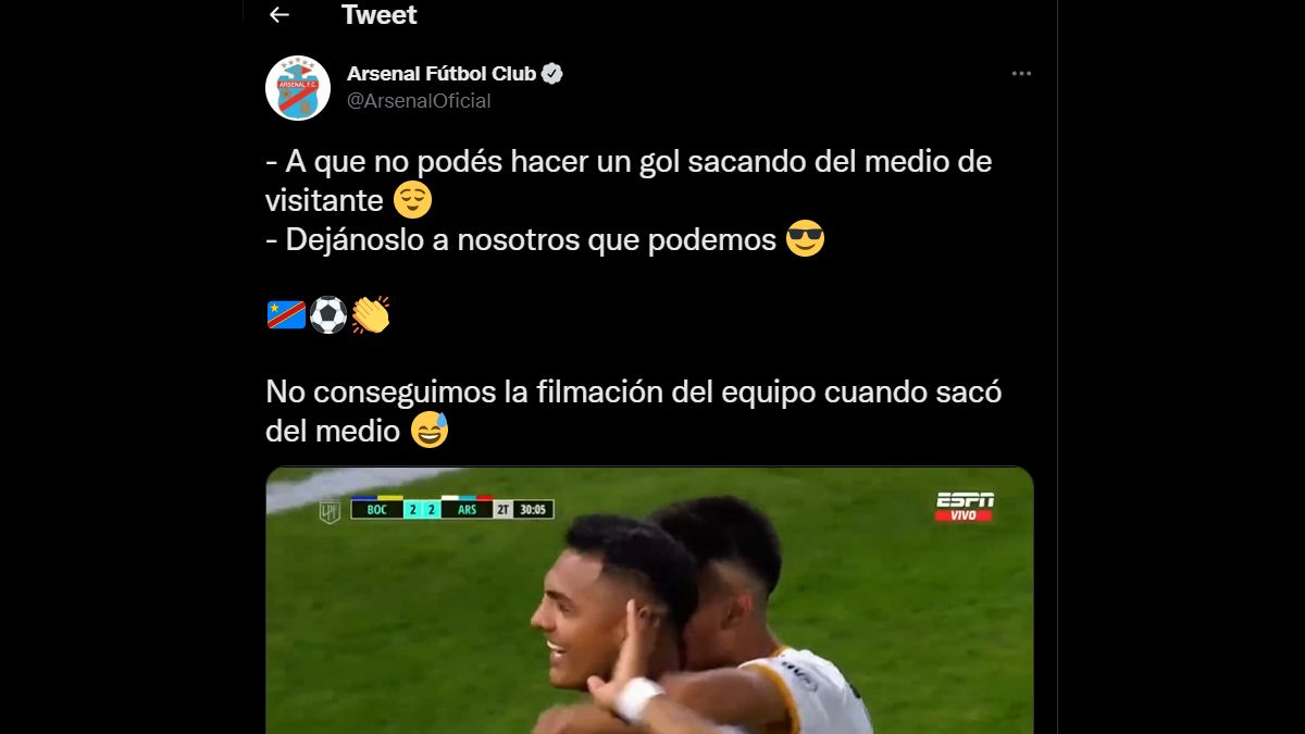 Minutos más tarde y, tras un centro desde la izquierda de Sebastián Lomónaco, Nicolás Figal quiso anticipar pero tiró la pelota contra su propio arco, sin embargo, el palo evitó que Arsenal se ponga en La Bombonera.