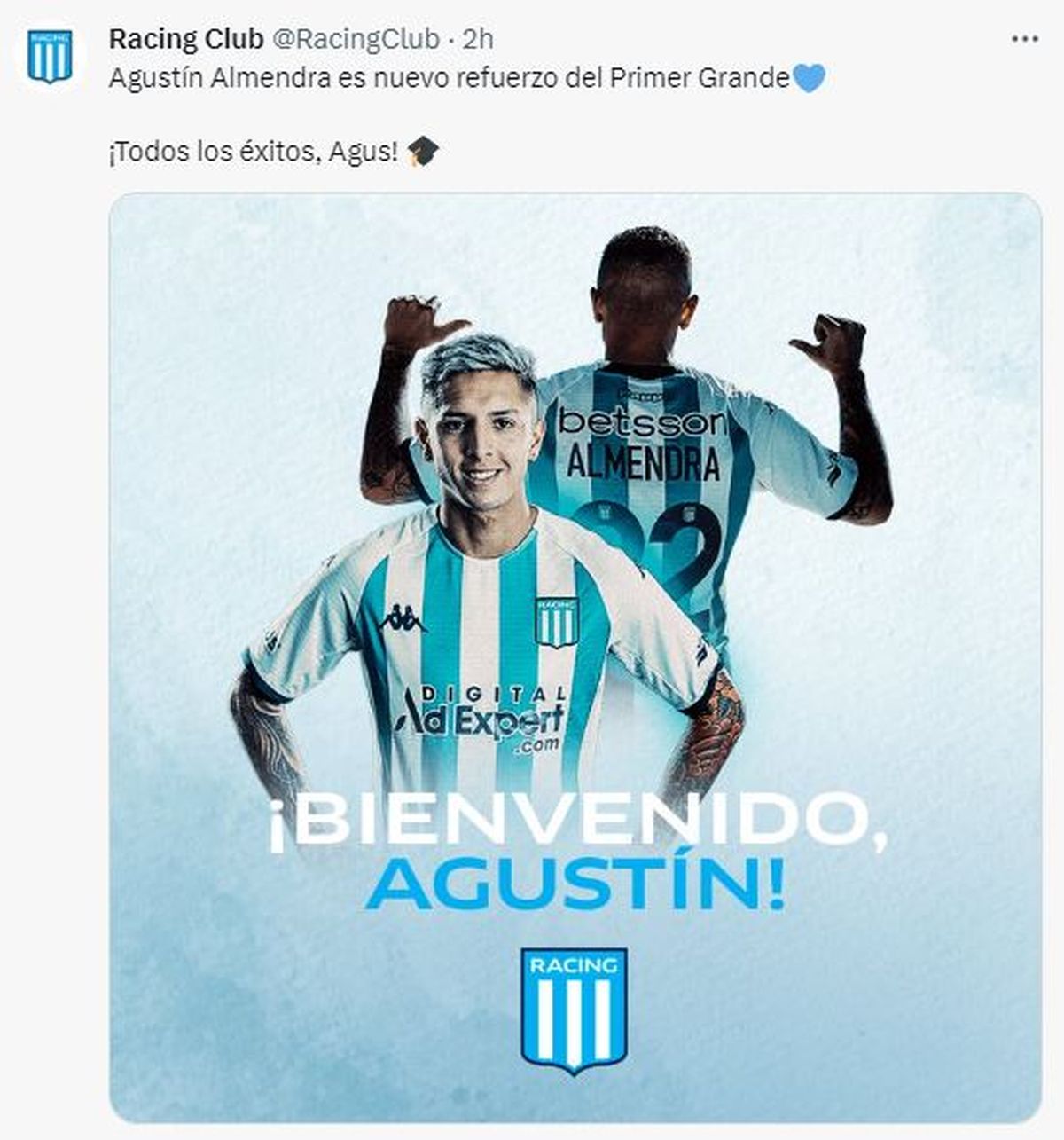 Racing cerró uno de sus primeros fichajes al asegurar la incorporación de Agustín Almendra. Tras una controvertida salida de Boca, el jugador fue presentado oficialmente por su nuevo equipo y dejó un mensaje poderoso que evocó emociones tanto en los hinchas de la Academia como en los del Xeneize.