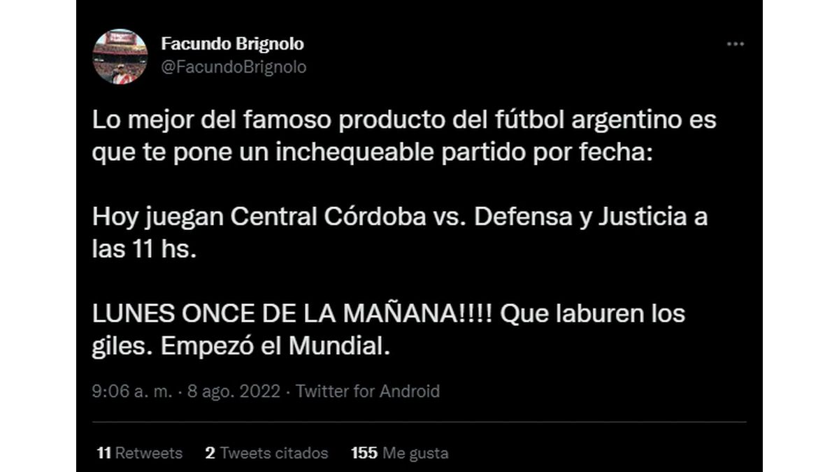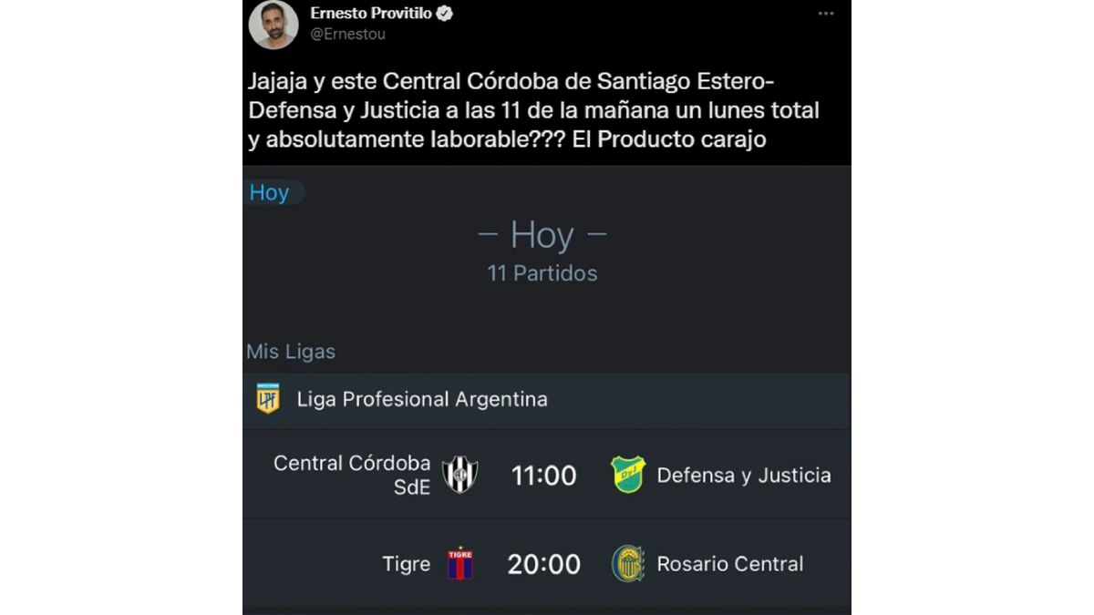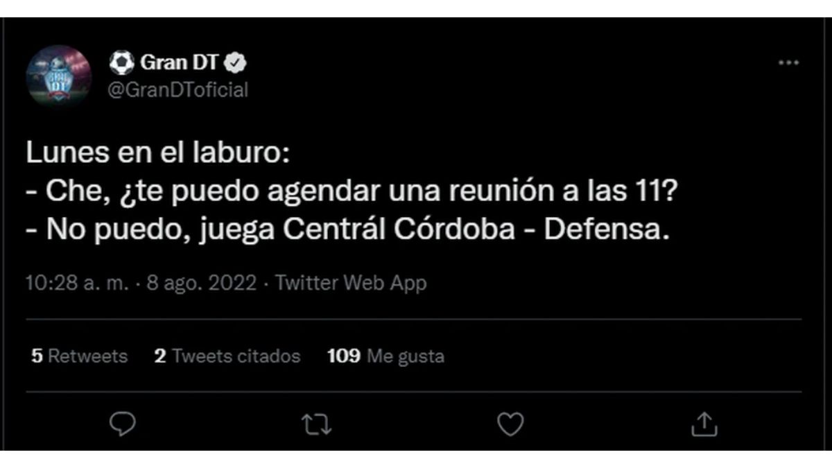 Central Córdoba de Santiago del Estero jugó desde las 11 de la mañana de este lunes su partido correspondiente a la fecha 12 frente a Defensa y Justicia, con la particularidad de que se trata de un duelo que estaba programado para este inusual horario. Y claro, estallaron los memes.