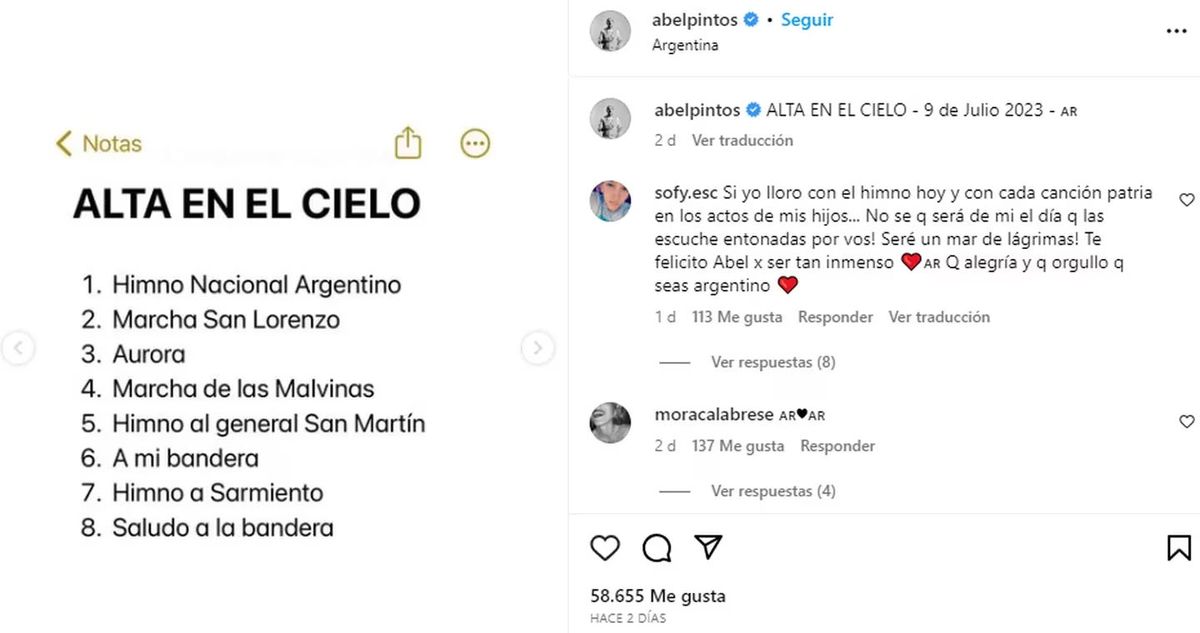 El próximo 9 de julio, Abel Pintos lanzará su nuevo álbum titulado "Alta en el cielo", que incluye ocho canciones patrias grabadas y filmadas con gran parte de sus partituras originales. El destacado álbum cuenta con la participación de la Orquesta Académica del Teatro Colón, bajo la dirección de Ezequiel Silberstein.