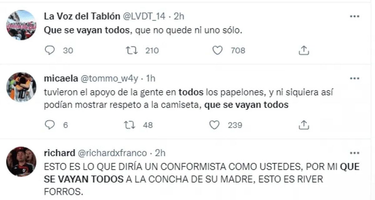 River cayó duramente ante Patronato por penales y quedó eliminado en los cuartos de final de la Copa Argentina. Tras el flojo rendimiento que mostró el Millonario, rápidamente los fanáticos hicieron viral una tendencia contundente en Twitter: "Que se vayan todos" y "váyanse todos" fueron las palabras que más escribieron los fanáticos tras la derrota.