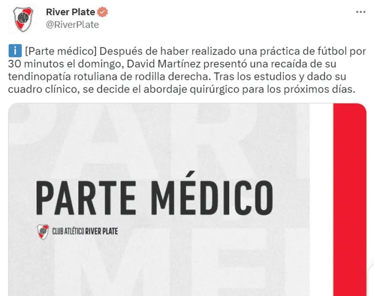 El panorama de Héctor David Martínez en River es cada vez más complicado. ¿El motivo? El zaguero central pasó de ilusionarse con su vuelta a las canchas en un par de semanas de la mano de Martín Demichelis a tener que volver a ser operado por una lesión que lo persigue desde el año pasado y que lo alejará de las canchas un largo tiempo.