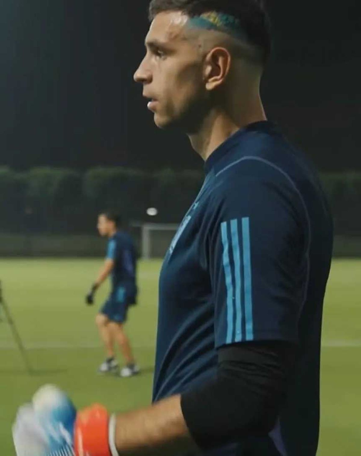 Emiliano 'Dibu' Martínez, arquero de la Selección Argentina, se convirtió en uno de los referentes y, este viernes, en la previa del duelo por los octavos del final del Mundial Qatar 2022, demostró su fanatismo por la Albiceleste estrenando un look muy llamativo: adornó su cabellera con los colores celeste y blanco.