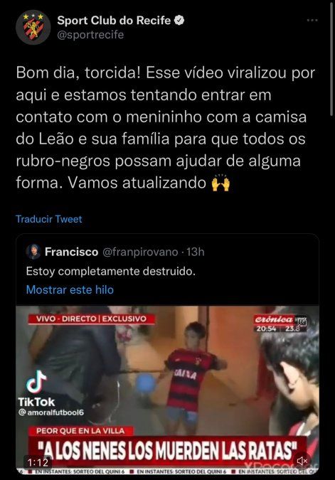 La solidaridad no entiende de fronteras. Los límites geográficos nunca fueron un impedimento para tratar de hacer el bien. Es el caso de Lautaro, un chico de 10 años que se hizo viral al decir que sueña con ser jugador profesional y "ser Maradona" para poder sacar a su madre de Villa Soldati, y que conmovió tanto a todos que hizo que un club de Brasil lo esté buscando. ¿Por qué? Por la camiseta que traía puesta en el video.