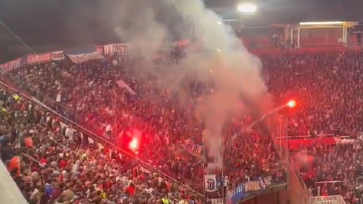 Desde la tribuna en la que estaban los hinchas de Nacional se encederon bengalas y fuegos artificiales que, en un principio, formaban parte de la fiesta.