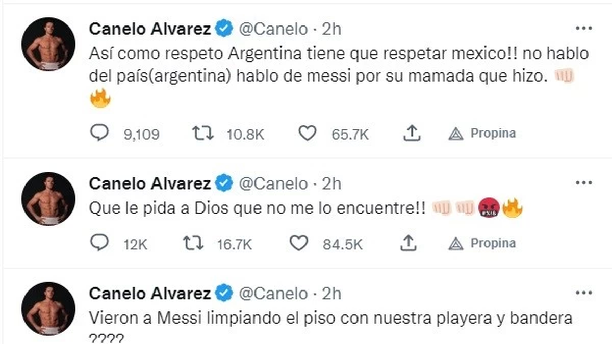 El boxeador Canelo Álvarez se mostró muy enojado en Twitter con Lionel Messi porque, según el pugilista, el jugador rosarino "le faltó el respeto a la bandera de México" cuando "la pisoteó", en medio de los festejos por el triunfo ante el "Tri" por la segunda fecha del Grupo C del Mundial de Qatar 2022.