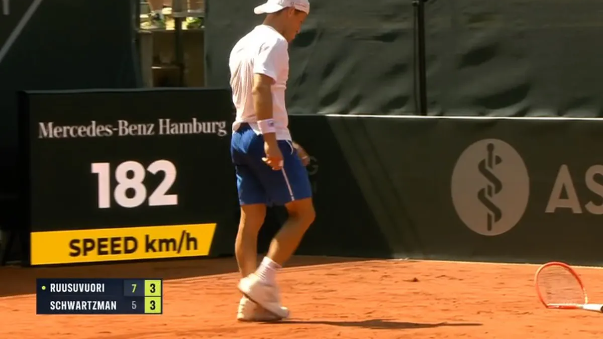 Diego Schwartzman, mejor tenista argentino del ranking mundial ATP, quedó eliminado este martes en la primera ronda del ATP 500 de Hamburgo, Alemania, que se juega sobre clay y reparte 1.770.865 euros en premios. El "Peque" perdió en la primera ronda contra el finlandés Emil Ruusuvuori (42) por 7-5 y 6-4 y estalló de bronca.