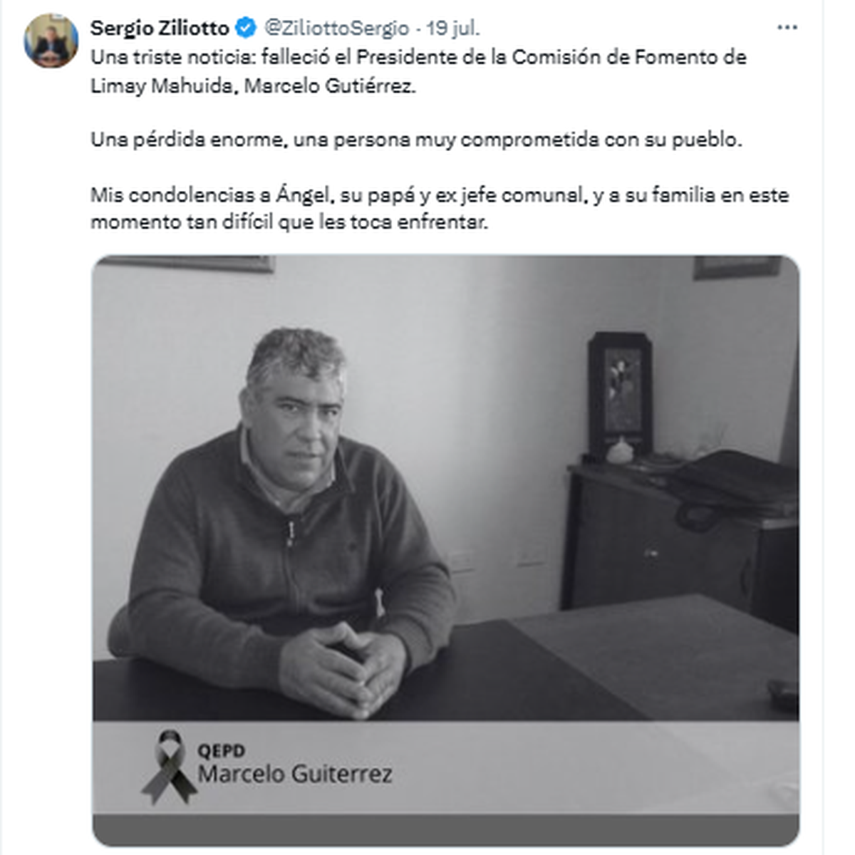 El intendente de Limay Mahuida, el distrito menos poblado de la Argentina, falleció este sábado por la tarde en un trágico accidente de tránsito en La Pampa. Marcelo Ángel Gutiérrez conducía su camioneta por la Ruta Nacional 20 cuando, por causas que se investigan, volcó.